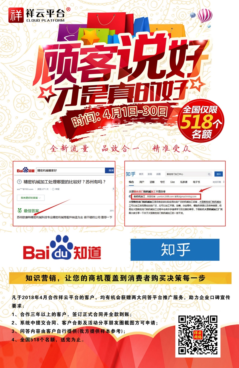百度知道,知乎。全新流量,品效合一,精準(zhǔn)受眾,F(xiàn)在做祥云營銷型網(wǎng)站,就送百度知道、知乎口碑營銷! 截止日期:2018-4-28日